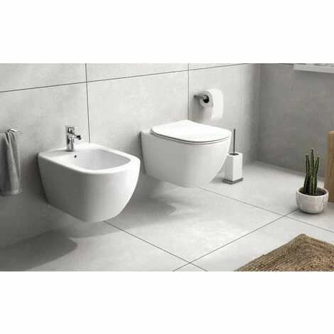 Hänge-Bidet mit Unterputz-Armaturen Ideal Standard Tesi aus Vitreous China Seidenweiß