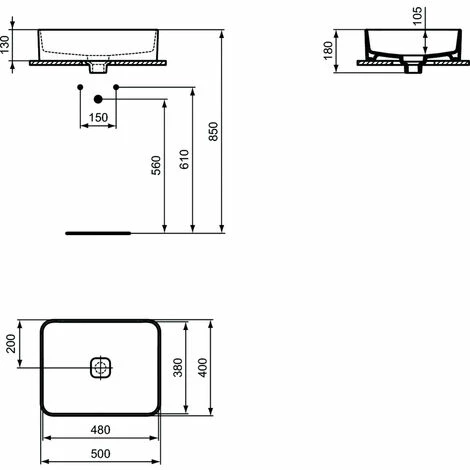 Ideal Standard Strada II Aufsatzwaschtisch 50×40 ohne Hahnloch und Überlauf