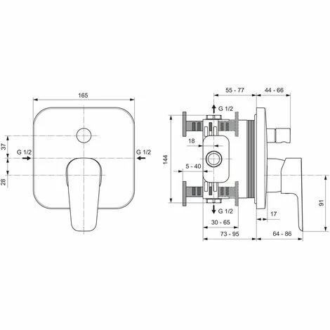 Ideal Standard Badearmatur Unterputz Ceraplan III, Bausatz2, Rosette 165x165mm, Chrom