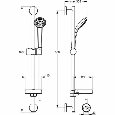 S1 Brausekombination 900 mmit 1-Funktionshandbrause Durchmesser 80 mmit Anti-Kalk-Funktion, aerosolarmit Brausestange 900 mm mit schwenkbarem Druckknopf-Schieber. Transparente Seifenschale. Brauseschlauch Metallflex 1750 mmit Oberfläche: Chrom Durchfluss