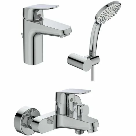 Das Paket überzeugt mit vielen technischen Vorteilen: Die Badearmatur minimiert durch die ECO-Funktion und die Click-Kartusche, welche bei 50% der erreichten Wasserleistung einen leichten Widerstand gibt, ihren Wasserverbrauch! Auch die Waschtischarmatur ist durch die geringe Durchflussmenge von nur 5 l/min perfekt um Wasser zu sparen. Zudem werden sie durch den integrierten Heißwassertemperaturbegrenzer vor Verbrennungen an zu heißem Wasser geschützt. Das Handbrause-Set überzeugt vor allem im Punkt Hygiene: Die EasyClean-Funktion verspricht eine besonders leichte Reinigung. Des Weiteren ist die Wandhalterung inklusive enthalten. Alles in allem: Qualitativ, praktisch und schön!