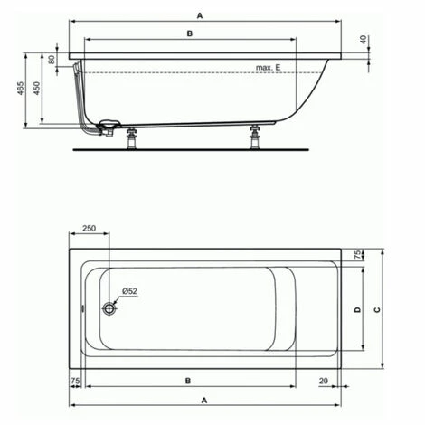 Eigenschaften der Badewanne 170x75x46,5 in Acryl, Weiß, Ideal Standard Connect Air (R000701):