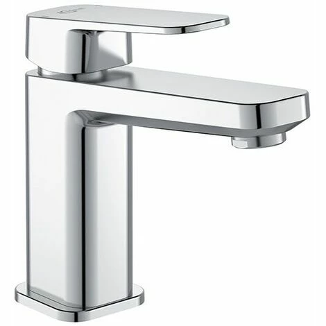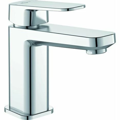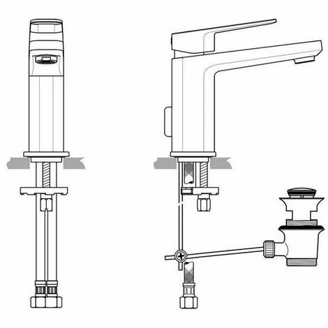“DN 15, starrer Gussauslauf, Sockelmaß 51 x 51 mm, Luftsprudler mit druckunabhängigem Mengenregler 5 l/min, einstellbarer Strahlwinkel mit Neigungswinkel 9° +/- 10°, Ausladung 126 mm, Auslaufhöhe 106 mm, flexible Anschlussschläuche G 3/8″”, Bedienungshebel aus Metall, mit Rot/Blau-Markierung auf dem Hebel”
