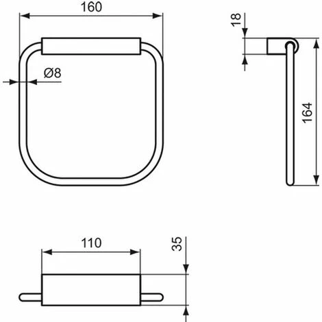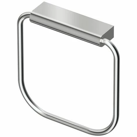 Handtuchring eckig (schwenkbar) inklusive Befestigungssatz. Ring und Halterung aus Metall. 2 verdeckte Befestigungspunkte. Befestigung zur erleichterten Montage über Langlöcher. Oberfläche: Chrom Außenmaße (BxTxH): 169x35x164 mm Hersteller: Ideal Sta