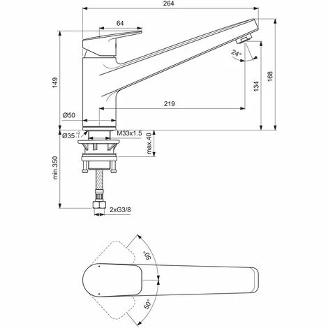 - 35 mm erforderlicher Hahnlochdurchmesser