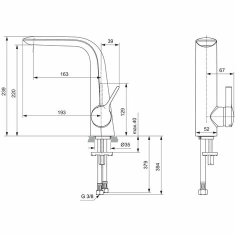 - Auslaufhöhe: 220 mm