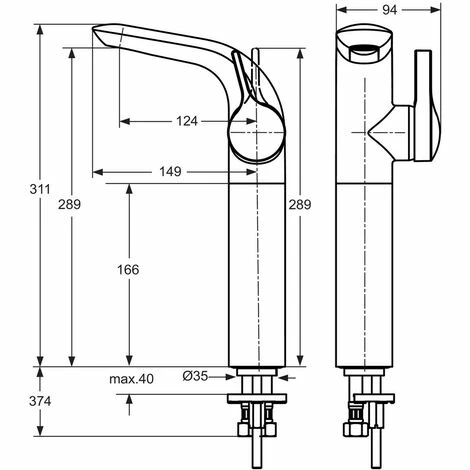 - Auslaufhöhe 289 mm