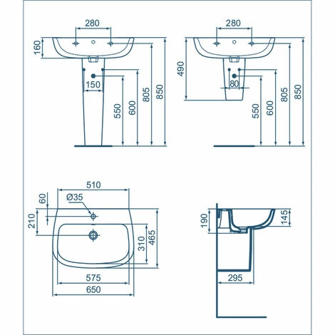 65 cm Esedra von Ideal Standard modernes Wandwaschbecken