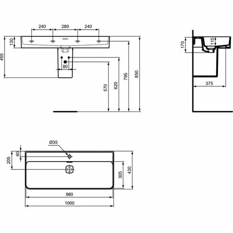 - Typ: 100 cm Wandwaschbecken;