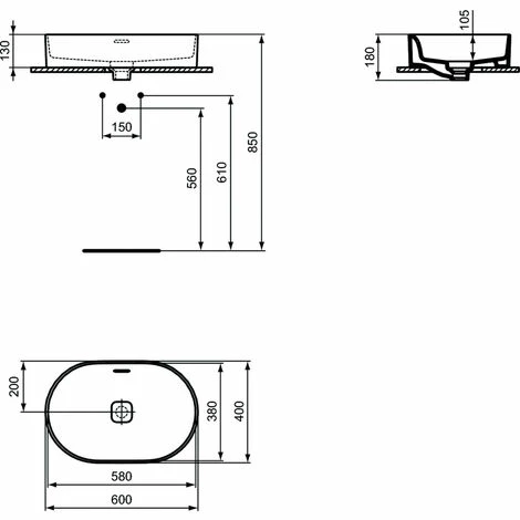- Typ: ovales Waschbecken;