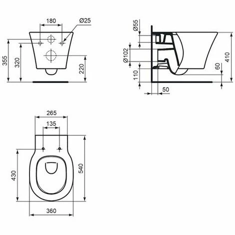 aus Kristallporzellan, inkl. Befestigungssatz für unsichtbare Befestigung, DIN EN 997, mit Spültechnologie AquaBlade, für Unterputzspülkasten ab 4,5 l Inhalt, Befestigung mit Befestigungssatz bei Massiv-Mauerstärke von mind. 120 mm oder Tragegerüst bei schwächeren Wänden