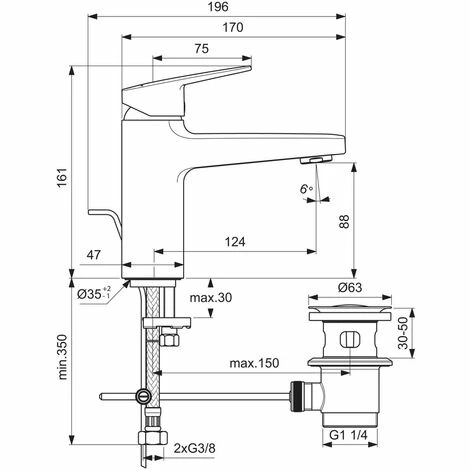 - Aufbauhöhe Unterkante Hahnauslass: 88