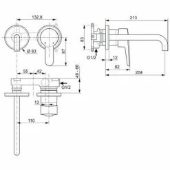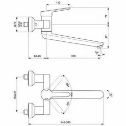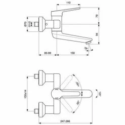 Ideal Standard Wand-Waschtischarmatur Unterputz Tonic II,5 X 193x83mm,Ausld.225mm,Chrom, A6335AA