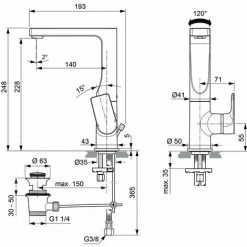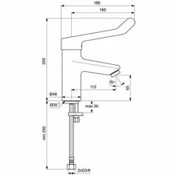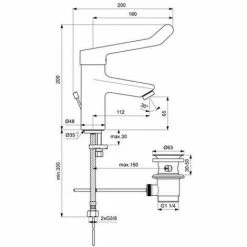 Ideal Standard Waschtischarmatur Ceraplus 2, Grande, Mit Klinikhebel,,Ausld.123mm,Chr, BC106AA