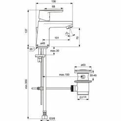 Ideal Standard Waschtischarmatur Connect Air, Slim, 5 L/min., Mit Ablaufgarnitur Ausld.107mm, Chrom