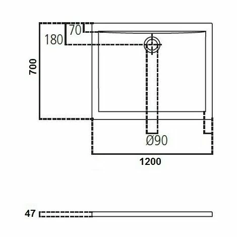 Rechteckige Acryl-Duschwanne 120X70 cm Ideal Standard Ultraflat mit Ablaufloch Ø90 mm